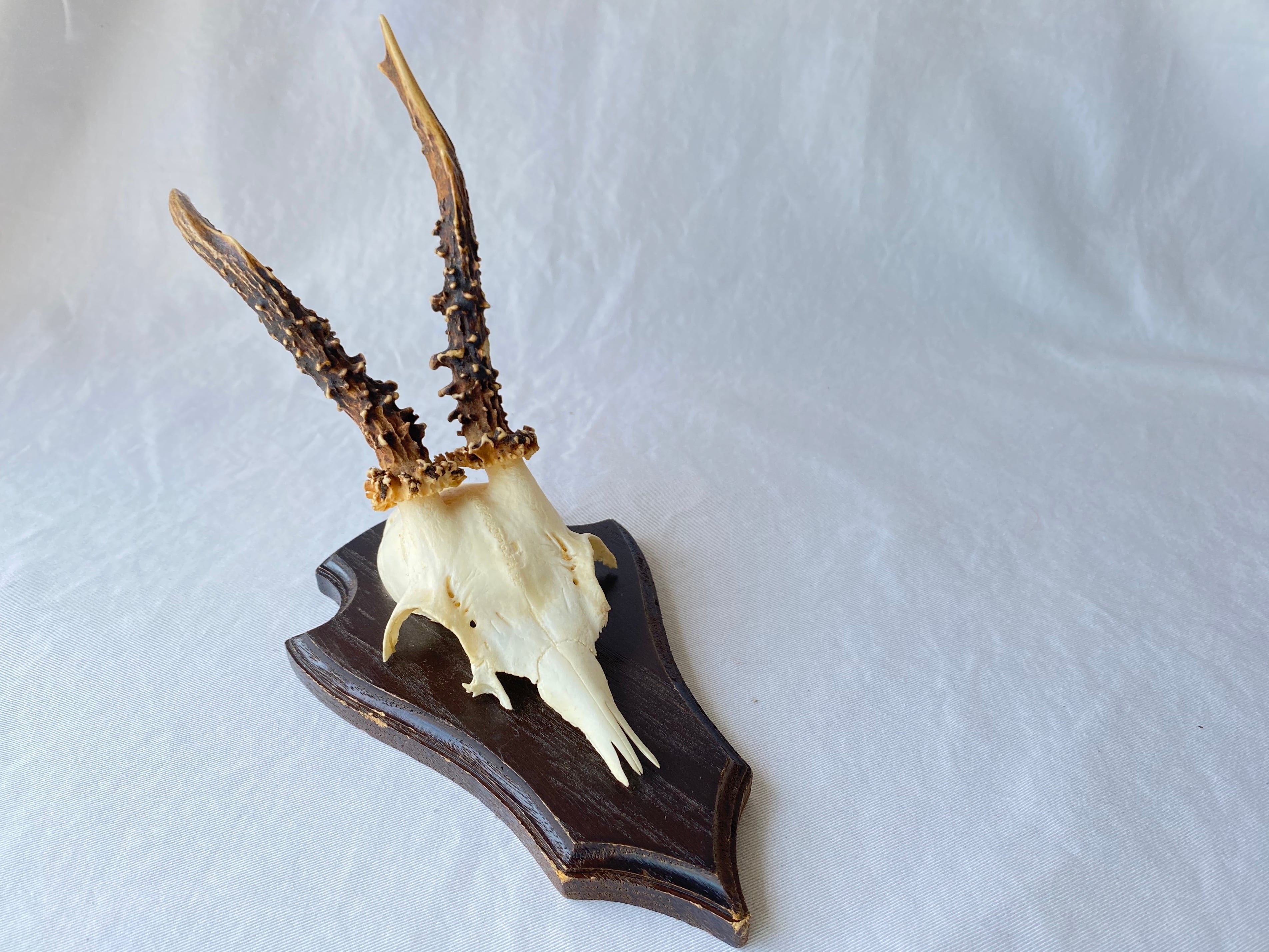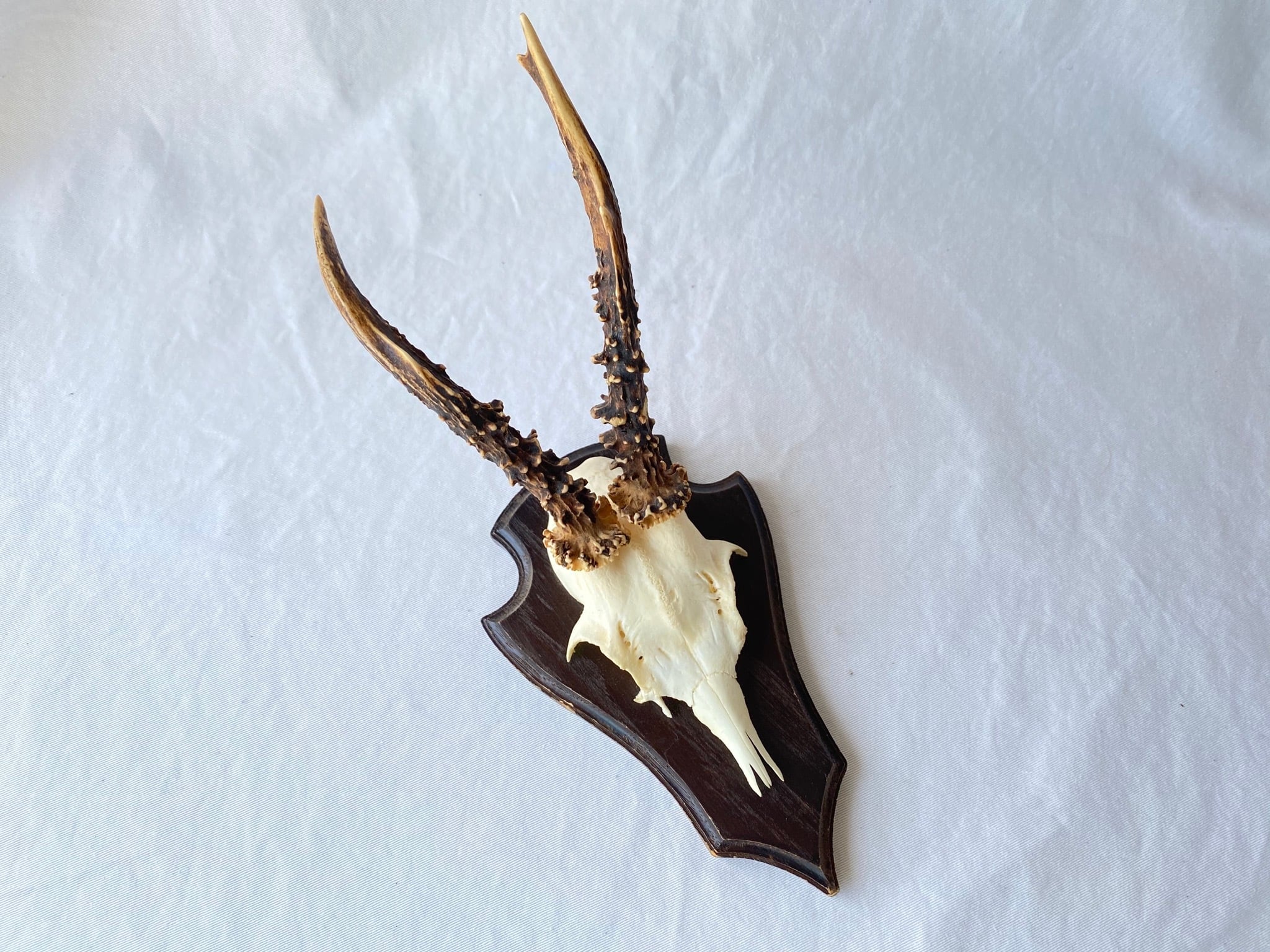 イギリスで仕入れた古い鹿のハンティングトロフィー 独特の存在感があり、ラスティックな雰囲気を演出してくれます 壁面のデコレーションにもおすすめです size: w 13 D 20 H 17 (cm)