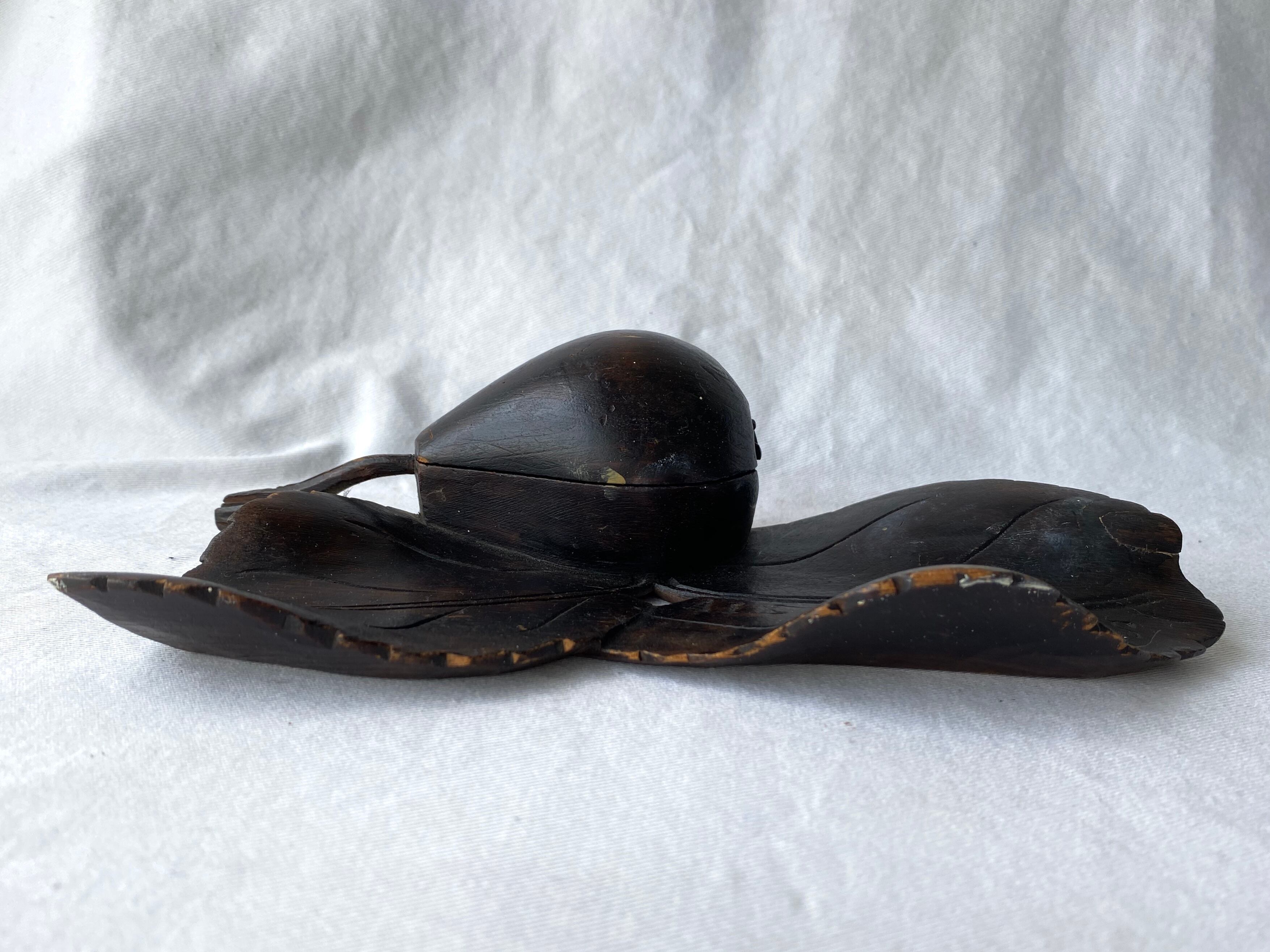 1900年代初頭 南仏AIX LES BAINSの古い万年筆のトレイ 暖かみのある木彫りが南仏らしい雰囲気です 洋梨の中にはインクボトルを置くスペースがございます アクセサリーケースなど大事なものを保管するのに良さそうです size: W 20 D10 H 5 (cm)