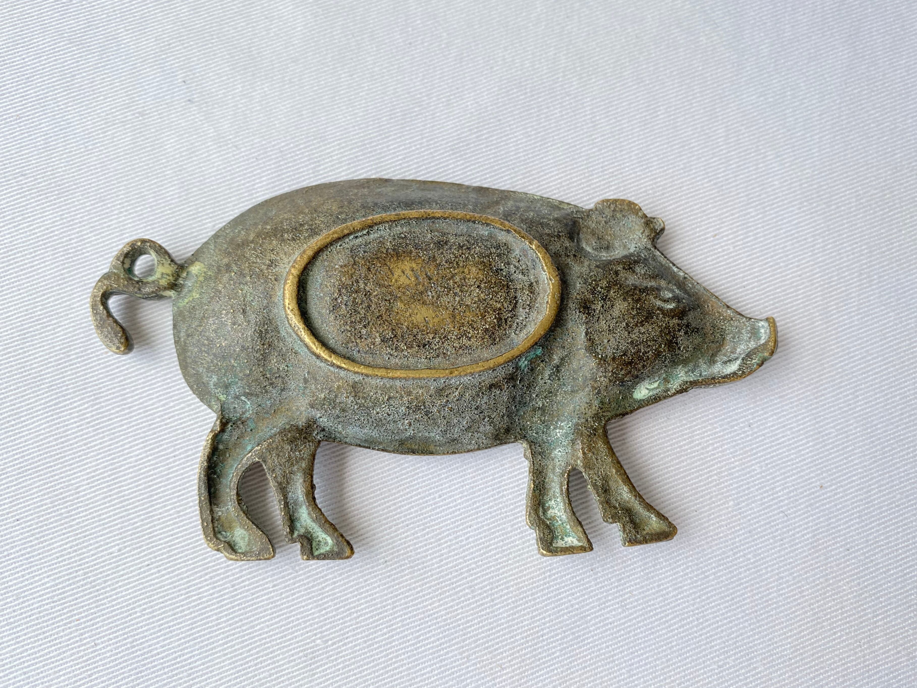 イギリスで購入した古い金属のトレイ 豚のユニークなデザインが可愛らしいです イギリスでは幸運のシンボルとして豚を贈る習慣もありますので、大切な人へのプレゼントにもおすすめです size: W 11.3 D 7.5 H 1.5 (cm)
