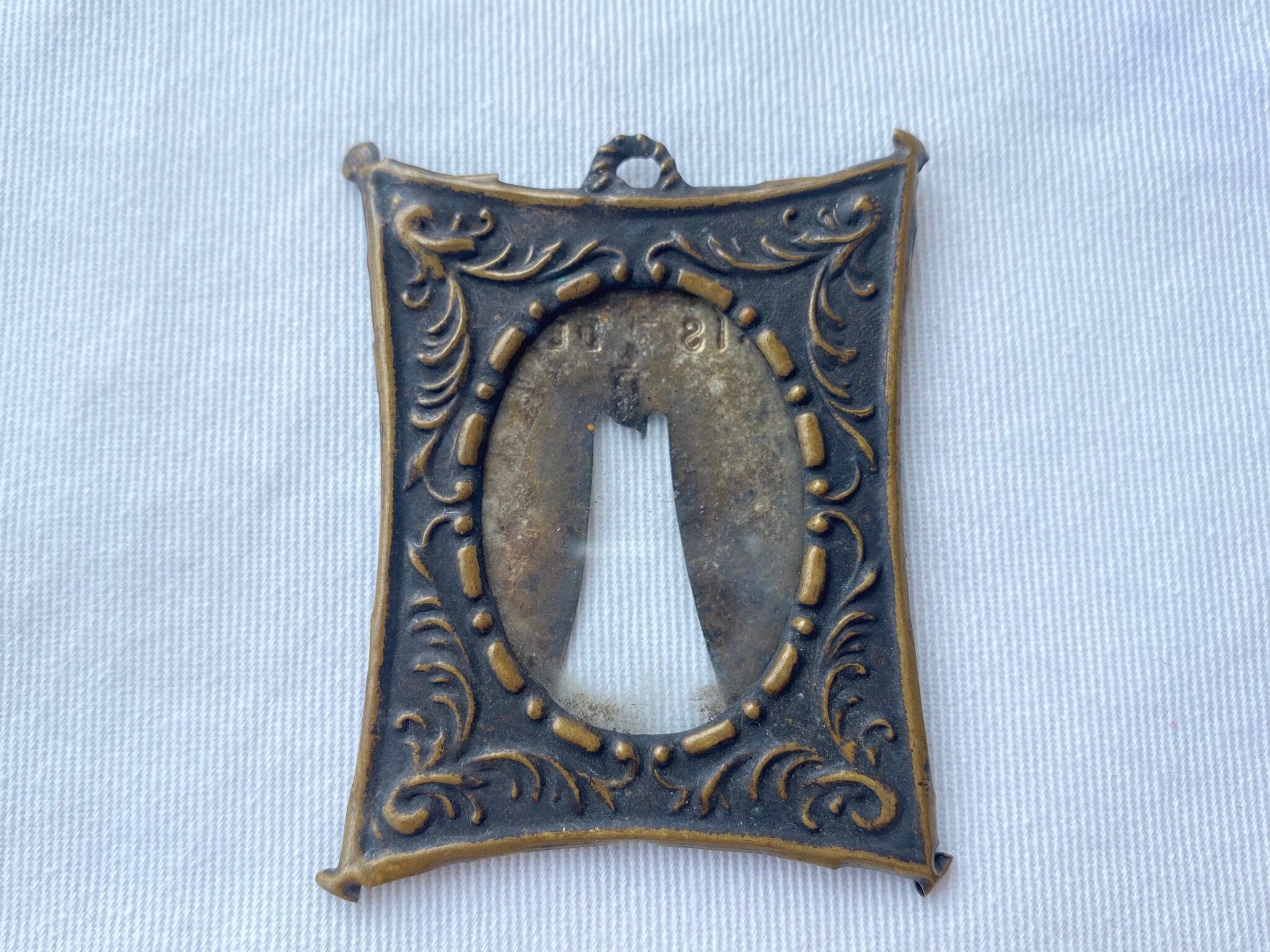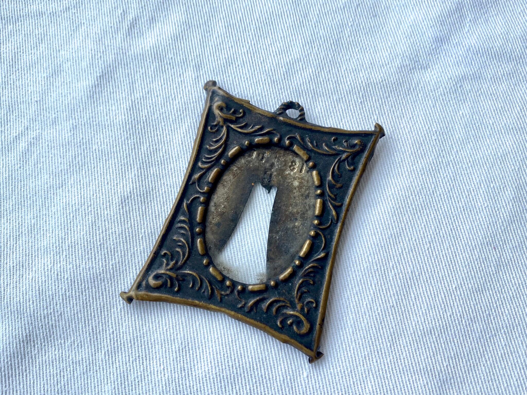 フランス パリの古い小さな壁掛けフォトフレーム 味わいのある風合いとフレンチアンティークらしい縁周りのデザインが上品な雰囲気です 写真はもちろん、ちいさな切手など飾っていただいても素敵です W4.7H5.5 D0.2 (cm)